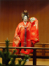 シテ(主人公)が主に面(おもて)をつけて装束(衣装)を着けて、笛や太鼓、小鼓、大鼓、地謡(じうたいと読みコーラスでナレーションをする)に合わせて舞を舞ったり、物語のセリフを謡う歌舞劇です。